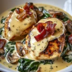 Rich & Creamy Smothered Chicken with Spinach, Bacon & Mushrooms is a delightful dish that brings together a savory combination of flavors and textures, creating an amazing meal that will leave everyone asking for seconds. This comforting recipe features juicy chicken smothered in a creamy sauce, complemented by the earthiness of mushrooms, the freshness of spinach, and the smoky flavor of crispy bacon. Perfect for weeknight dinners or special occasions, this dish promises to satisfy your cravings and impress your family and friends alike.